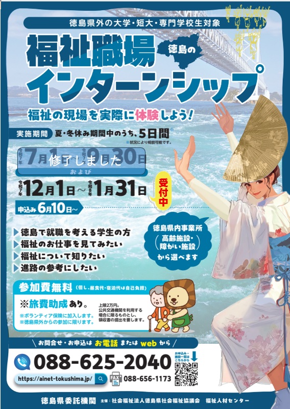 【徳島県外で在学中の学生対象】福祉職場インターンシップのご案内
